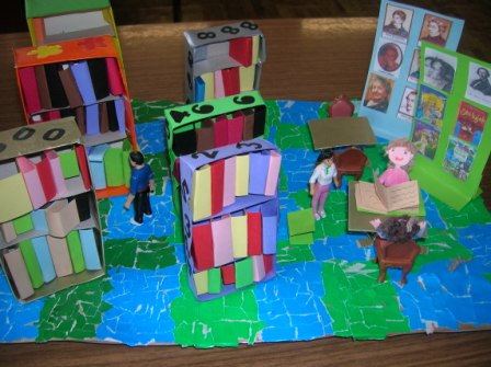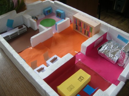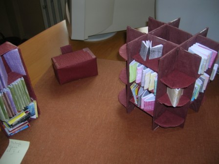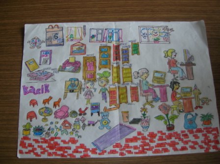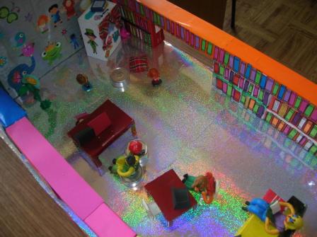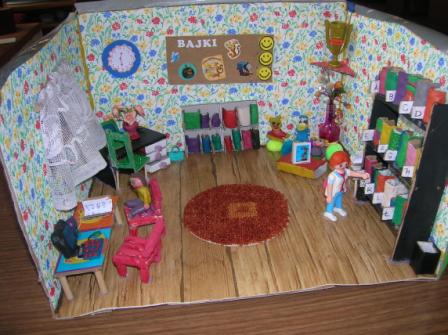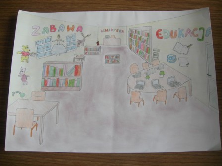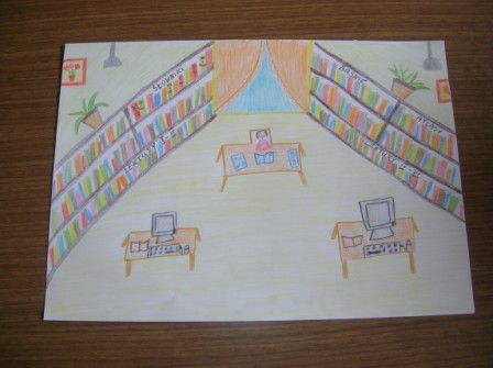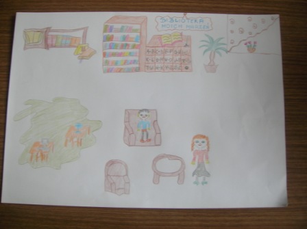 Dwie konkretne wskazówki postanowiłyśmy wykorzystać podczas prac nad zmianą wizerunku biblioteki. Po pierwsze: chcemy wyraźnie wydzielić część biblioteki dla uczniów najmłodszych (prawdę mówiąc tylko oni są jeszcze głodni przeżyć czytelniczych), po drugie chcielibyśmy wykonać regał zaprojektowany przez ucznia klasy V b Patyka Guzę. Chcemy wykorzystać pomysł, troszkę go jeszcze modyfikując.