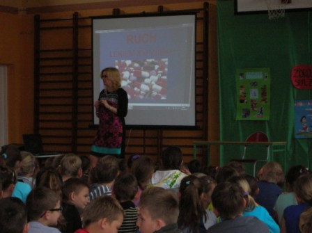 28 kwietnia odbyło się spotkanie klas I – III z lekarzem rodzinnym dr Hanną Rauhut - Wawrzyniak. Dzieci obejrzały prezentację multimedialną pt. „Ruch to zdrowie”, podczas której dowiedziały się od pani doktor, dlaczego tak ważny jest ruch w rozwoju człowieka, ile czasu dziennie zaleca się dzieciom na tzw. aktywny wypoczynek, jakim chorobom przeciwdziała aktywny tryb życia. Na koniec usłyszały przesłanie dla swoich rodziców, aby również w dorosłym życiu doceniać i stosować proste lekarstwo, jakim jest ruch na świeżym powietrzu i uprawianie sportu.