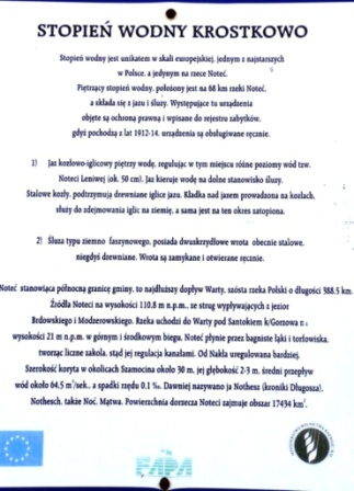 Kolejnym etapem tej wyprawy był piętrzący stopień wodny „Krostkowo” na rzece Noteć. Śluza nr 11 jest unikatem w skali europejskiej i jedynym tego typu na rzece. Śluza jest budowlą typu ziemno-faszynowego. Posiada dwuskrzydłowe stalowe wrota, które są zamykane i otwierane ręcznie. Oprócz śluzy jest jeszcze jaz piętrzący wodę. Reguluje on w tym miejscu różne poziomy wód Noteci o około 40 cm. Wszystkie urządzenia śluzy i jazu pochodzą z lat 1912-1914. Są objęte ochroną prawną i zostały wpisane do rejestru zabytków.