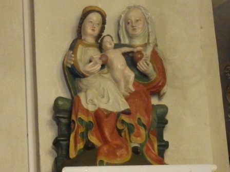 Do najstarszych zabytków kościoła krostkowskiego pamiętających czasy średniowiecza należą: granitowa kropielnica stojąca u wejścia do kościoła z XIII/XIV w, późnogotycka rzeźba Madonny z Dzieciątkiem oraz XIV-wieczna rzeźba Św. Anny Samotrzeciej, której kult był żywy przez stulecia. Na uwagę zasługuje również renesansowa monstrancja wieżyczkowa z drugiej ćwierci XVII w. Obok kościoła znajduje się drewniana dzwonnica, a w niej dwa zabytkowe dzwony: mały z 1641r w stylu manieryzmu, z wyobrażeniem na powierzchni Matki Boskiej i duży w stylu barokowym, odlany w 1756 r. – na jego powierzchni znajdują się postacie aniołów.
