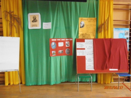 Uczniowie z klas I- III w miesiącu maju mieli wykonać album poświecony patronowi. Po zebrani prac na szkolnym korytarzu przygotowano wystawkę. Uczniowie chętnie przeglądali pracę koleżanek i kolegów.