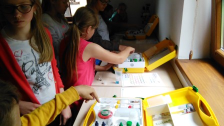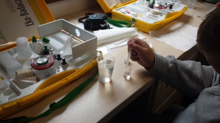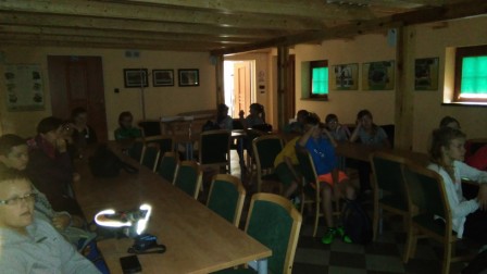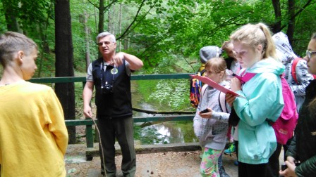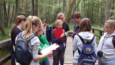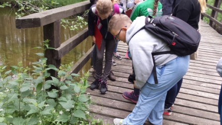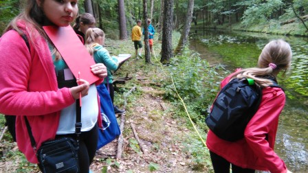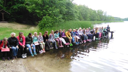 Po smacznym śniadaniu, wielki i trzęsący autobus zawiózł nas do siedziby Drawieńskiego Parku Narodowego, gdzie podzieleni na dwie grupy, udaliśmy się na badania terenowe. Poznaliśmy organizmy wodne oraz sposób na ocenę czystości wody w jeziorze i rzece, badaliśmy i spisywaliśmy gatunki roślin i zwierząt nad brzegiem jeziora i w wodzie. Przy pomocy mikroskopu obserwowaliśmy życie w kropli wody. Swoje obserwacje i wyniki zapisywaliśmy na kartach pracy. Podczas prowadzonych badań terenowych bardzo ciekawie i interesująco opowiadał nam o specyfice miejscowych środowisk wodnych pracownik parku narodowego ,,Pan Jarek Szuwarek '' . W wodach największego jeziora DPN Ostrowieckiego zobaczyliśmy ciekawe okazy ryb z czerwonymi płetwami - krasnopiórki. Wieczorem, kiedy na ciemnym niebie pojawią się gwiazdy, będziemy je obserwować przez teleskop. Zmęczeni i pełni wrażeń udamy się na nocny odpoczynek.