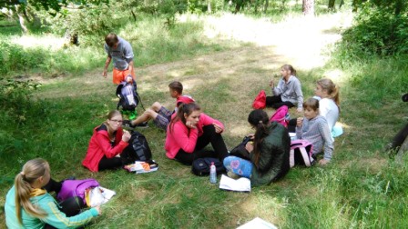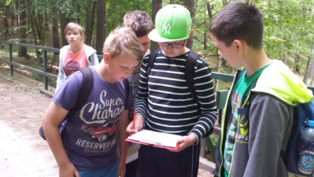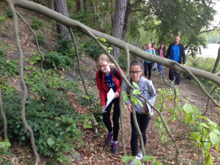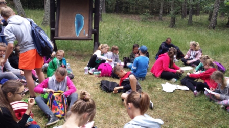Podobnie, jak w dniu wczorajszym, po śniadaniu udaliśmy się autokarem z punktu noclegowego do miejsca, w którym rozpoczęliśmy kolejny dzień przyrodniczych zmagań. Na parkingu przy Kanale Głuchym zostaliśmy podzieleni na dwie grupy i z pomocą wskazówek zawartych w otrzymanych mapach ruszyliśmy na trasę, podczas której na poszczególnych punktach etapowych poznawaliśmy bogactwo gatunkowe DPN. Przy pomocy atlasów do oznaczania roślin, zwierząt i grzybów identyfikowaliśmy i opisywaliśmy napotkane rośliny, owady, grzyby i zwierzęta. Swoje obserwacje zapisywaliśmy na kartach pracy.