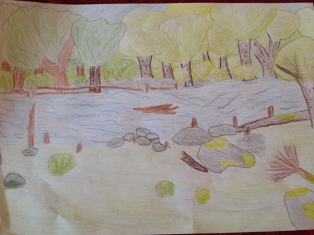 Po obiedzie ujawnialiśmy swoje talenty plastyczne. Każdy z nas za pomocą rysunku wykazywał się wiedzą na temat ochrony przyrody w Drawieńskim Parku Narodowym. Efekty naszych wybranych prac przedstawiają poniższe zdjęcia.