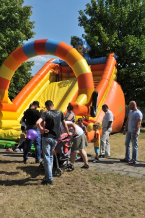 Równocześnie gry i zabawy toczyły się w różnych punktach boiska. Dla miłośników sportów przygotowano 7 konkurencji. Można się było sprawdzić w : rzutach na celność, podnosząc odważnik lub w przenoszeniu wody bez rozlewania. Wielu chętnych przyciągnęły trampoliny i dmuchany zamek.