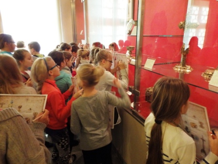 Kolejnym etapem wycieczki było zwiedzanie znajdującego się na Wzgórzu Lecha Muzeum Archidiecezji Gnieźnieńskiej. W muzeum zobaczyliśmy wiele eksponatów związanych z historią Gniezna. Najbardziej atrakcyjna część zwiedzania polegała na rozwiązywaniu zabawy : ”Poszukiwanie skarbów".