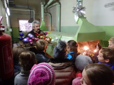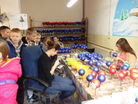 W dawnej stolicy Polski - naszym celem było poznanie procesu wytwarzania i ozdabiania bombek choinkowych. Wszyscy uczestnicy wycieczki przeżyli tam niezapomniane chwile. Z wielkim zainteresowaniem obserwowaliśmy wydmuchiwanie, posrebrzanie, suszenie, ozdabianie oraz pakowanie ozdób. Na koniec pobytu uczniowie mogli zakupić w sklepie ozdoby choinkowe. Na pamiątkę pobytu każdy uczeń otrzymał bombkę ze swoim imieniem. Wycieczka dostarczyła nam wielu wrażeń.