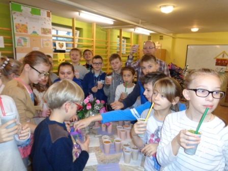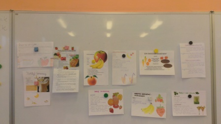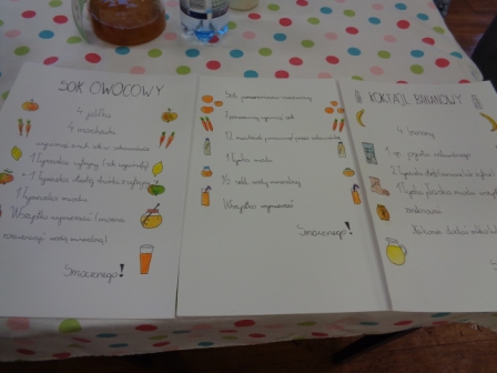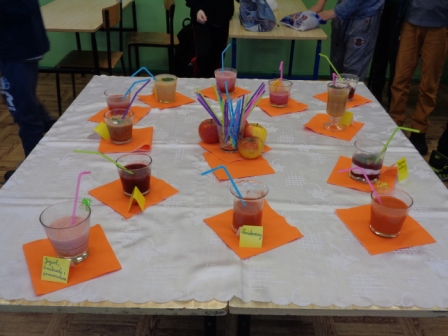 Uczniowie własnoręcznie przygotowali wiele kolorowych, zdrowych , naturalnych, przepięknie pachnących mikstur na podstawie różnorodnych przepisów, które zostaną wywieszone na gazetce w stołówce szkolnej.