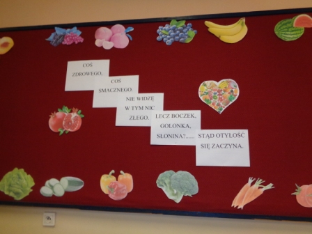 Innym zadaniem profilaktycznym realizowanym przez część uczniów w każdej klasie było przekazanie informacji o zaletach naturalnej żywności i szkodliwości tzw. śmieciowego jedzenia.