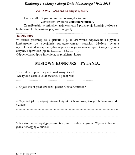 Konkursy i zabawy z okazji Dnia Pluszowego Misia 2015