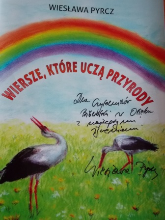 Spotkanie autorskie z panią Wiesławą Pyrcz było bardzo interesujące. Autorka podkreśliła, jak ważną rolę w życiu każdego dziecka odgrywa pluszowy miś. Jest on bowiem nie tylko towarzyszem zabaw, ale daje też poczucie bezpieczeństwa i pełni funkcję terapeutyczną.