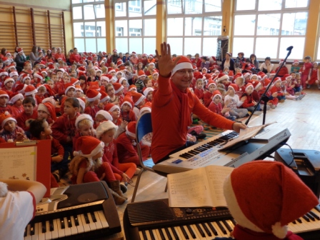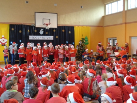 Tego też dnia odbył się koncert mikołajkowy, w którym wystąpił zespół wokalno - instrumentalny pod kierunkiem Leszka Kusza, razem z którym wszyscy uczniowie naszej szkoły śpiewali piosenki o tematyce zimowej i mikołajkowej oraz znane kolędy.