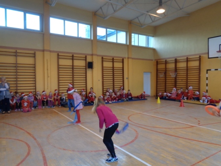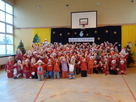 Piątek 4 grudnia w naszej szkole był dniem pod hasłem „Mikołajki w szkole”. Tak jak co roku, uczniowie klas młodszych rywalizowali między sobą w zabawach sportowych, nad którymi czuwały Krystyna Kowalska i Jadwiga Strzyżewska. Uczestnicy zabaw w miłej atmosferze wzajemnie się poznawali i świetnie bawili. Na koniec zawodnicy otrzymali słodki poczęstunek i pozowali do wspólnego zdjęcia.