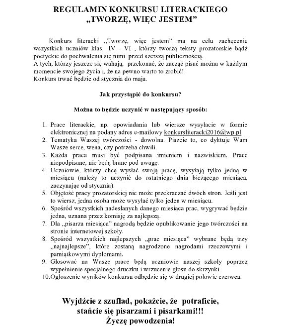 KONKURS LITERACKI "TWORZĘ, WIĘC JESTEM" TRWA!
