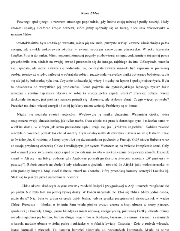 W styczniowej edycji konkursu literackiego „Tworzę, więc jestem”, zwyciężyła praca Poli Klinowskiej z klasy VI a. Serdecznie jej gratuluję i zapraszam wszystkich do lektury opowiadania pt. „Nowa Chloe”.