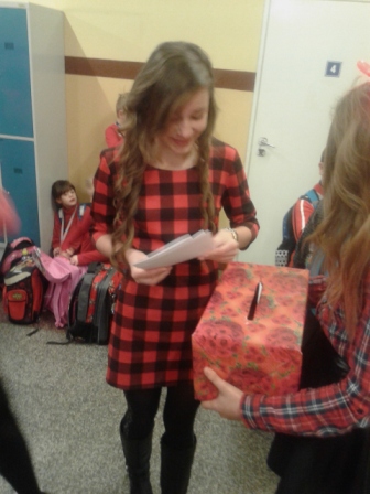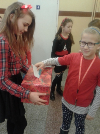 Na końcu „walentynkowe listonoszki” dostarczyły kartki adresatom do klas. Królową Walentynek została uczennica z klasy IVa Jagoda Mrotek, która otrzymała 7 kartek, a królem - Patryk Rozonka uczeń klasy VIb, który otrzymał 28 kartek walentynkowych. GRATULUJEMY!