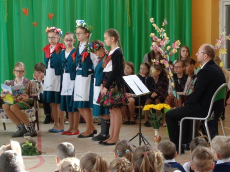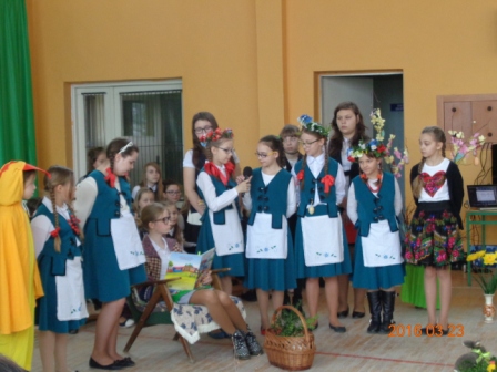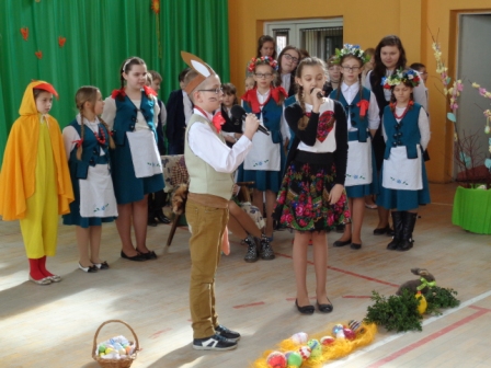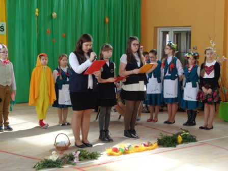 Chcąc przybliżyć uczniom naszej szkoły tradycje i zwyczaje wielkanocne uczniowie klasy IVc i VI a pod kierunkiem swoich wychowawców przygotowali przedstawienie „Jak to niegdyś bywało”, które odbyło się 23 marca. Na zakończenie Julka złożyła wszystkim życzenia – Zdrowych radosnych Świąt w gronie najbliższych oraz Wesołego Alleluja.