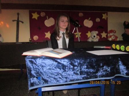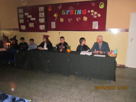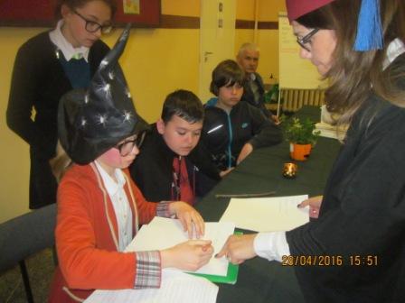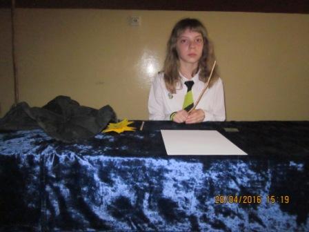 O godzinie 15.00 tego samego dnia (26.04.2016) odbył się finał quizu „W magicznym świecie Harrego Pottera. Fani przygód o Harrym Potterze Pola Klinowska, Jakub Brzeziński i Remigiusz Matuszewski, uczniowie klasy VIa i VIc, pomogli w przygotowaniu zarówno zadań dla uczestników, jak i dekoracji. Należy dodać, że to właśnie za ich inicjatywą do tego konkursu doszło.
