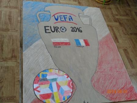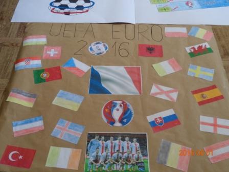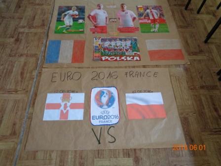Natomiast klasy starsze, czyli IV – VI w tym samych czasie w klasach pod opieką swoich wychowawców wykonywali prace plastyczne o tematyce bardzo aktualnej i związanej ze sportem, a mianowicie o Euro 2016, które rozpocznie się w czerwcu we Francji. Wykonane prace były pomysłowe, kolorowe i zawierały bardzo dużo aktualnych informacji na temat mistrzostw Europy w piłce nożnej. Wszystkie plakaty zasłużyły na wyeksponowanie i dlatego wywieszone zostały na dolnym korytarzu szkoły.