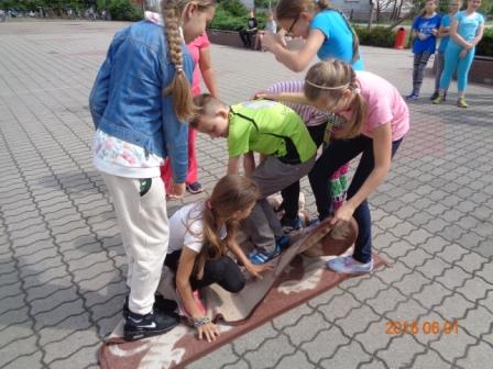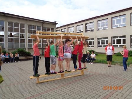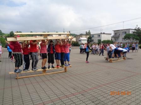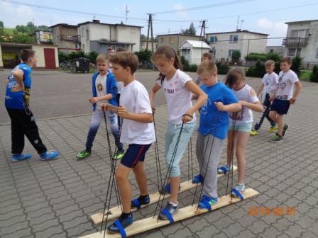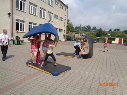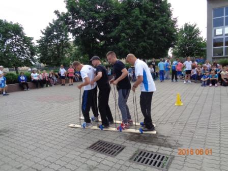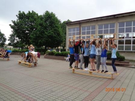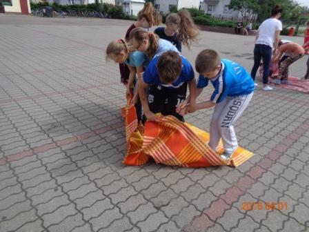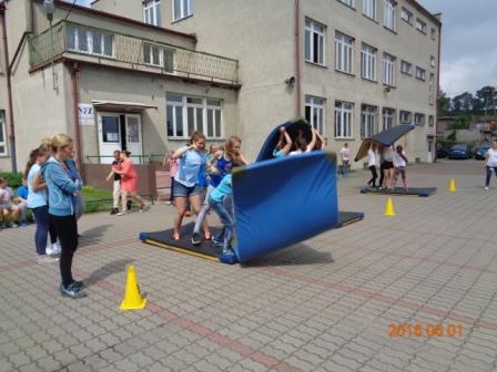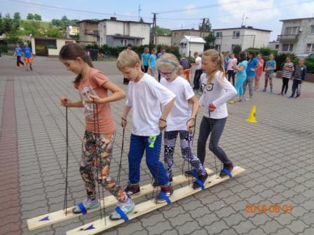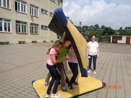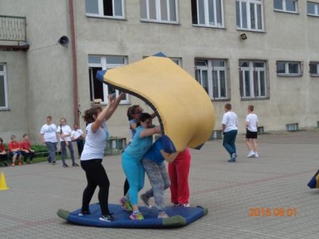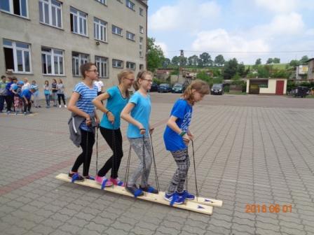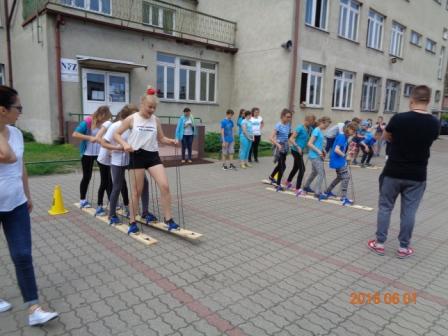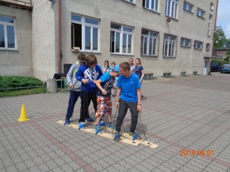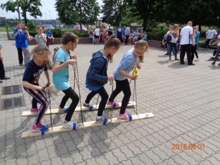 Konkurs plastyczny to nie wszystko, co działo się tego dnia w szkole. Otóż, na boisku szkolnym odbyły się konkurencje sportowo – rekreacyjne z udziałem wszystkich uczniów. Rywalizacja przebiegała w poziomach wiekowych; oddzielnie rywalizowały klasy czwarte, oddzielnie piąte i szóste. Konkurencje były ciekawe i nietypowe: przekładanie koca na drugą stronę, przemieszczanie się na określonym odcinku przenosząc ławeczki i materace, wyścig na deskach pod nazwą „stonoga” oraz quiz wiedzy o Euro 2016. Zaangażowanie uczestników było bardzo duże, jednak największe emocje wzbudził wyścig na deskach, który wymagał od uczestników współpracy i zgrania całego zespołu. Ciekawość konkurencji była tak duża, że zmotywowała również nauczycieli, którzy w pełnym zgraniu podjęli wyzwanie i stanęli do współzawodnictwa między sobą.