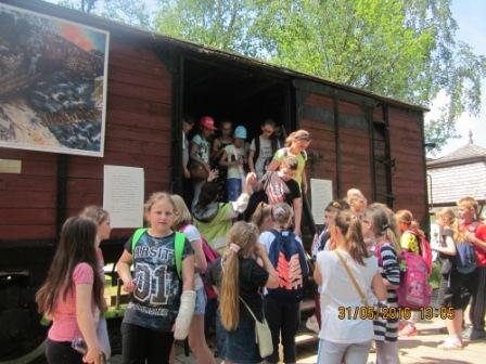 Uczniowie klas czwartych wraz ze swoimi wychowawcami I. Perlińską, M. Lewandowską, L. Kuszem i S. Hausz, we wtorek 31 maja br. byli uczestnikami wycieczki do Szymbarku. Wyjechaliśmy o 6.20, by po 3,5 godzinie dotrzeć do Będomina, gdzie znajduje się muzeum Hymnu Narodowego. Uczniowie z zainteresowaniem wysłuchali historii powstania Hymnu Polskiego, jak i informacji dotyczących rodziny autora Hymnu – Józefa Wybickiego.