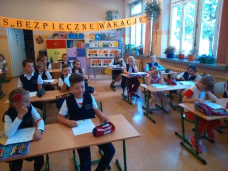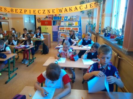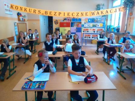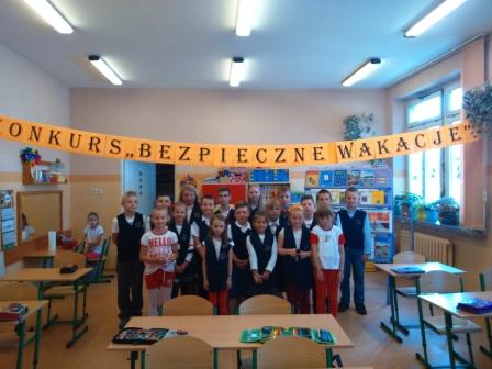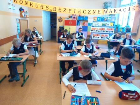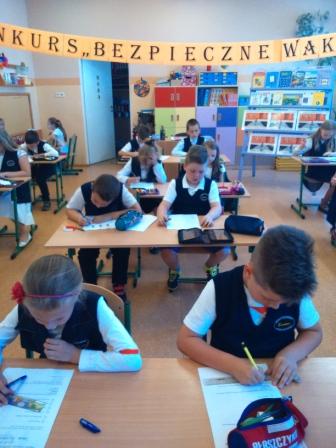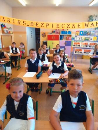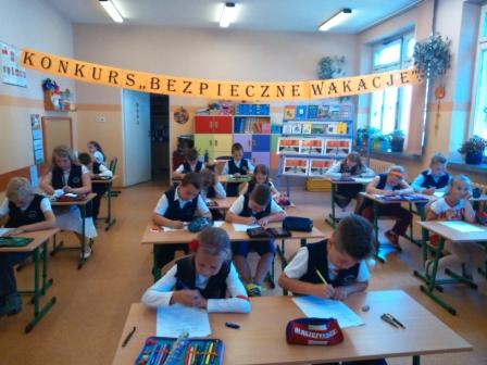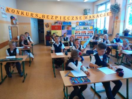 W trosce o bezpieczeństwo naszych najmłodszych uczniów z klas I – III, nauczycielki przed wakacjami utrwalają zasady ruchu drogowego oraz przypominają bezpieczne zachowania w różnych miejscach letniego wypoczynku. W klasach odbył się konkurs pod hasłem „Bądźmy bezpieczni podczas wakacji”. Najlepsi zostali wytypowani do etapu szkolnego.