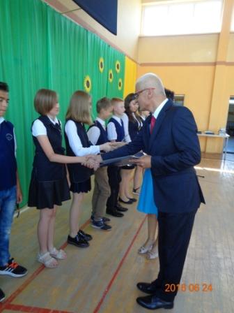 Następnie pan dyrektor Jacek Wiśniewski wręczył świadectwa ukończenia szkoły absolwentom. W tym dniu wyróżniono też uczniów, którzy osiągnęli średnią powyżej 4,75 i wykazali się co najmniej bardzo dobrym zachowaniem.