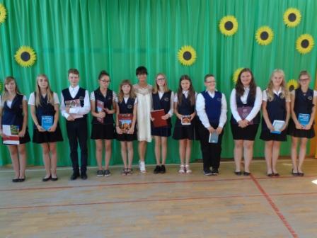 Opiekunki Samorządu Uczniowskiego wręczyły wyróżniającym się w pracy społecznej uczniom nagrody książkowe.