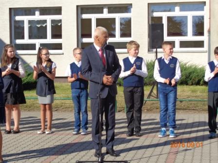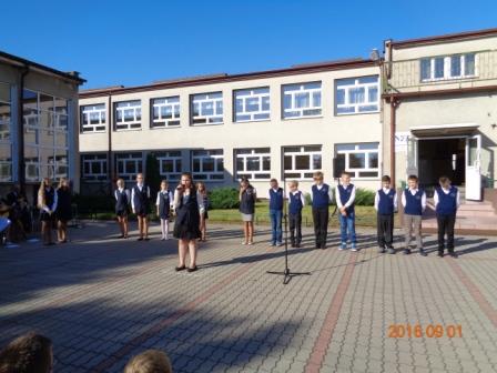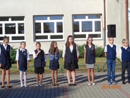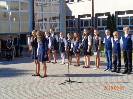 Tradycyjnie 1 września rozpoczęliśmy nowy rok szkolny. Program artystyczny przygotowali uczniowie klasy Vc oraz grupa uczniów z koła muzycznego Pani Danuty Budy. W uroczystości udział wzięli zaproszeni goście Pani Bogusława Jagodzińska – Burmistrz Wyrzyska, ksiądz proboszcz Adam Przyborski oraz licznie zgromadzone grono rodziców. Bardzo dziękujemy artystom za przygotowanie ciekawego programu słowno muzycznego, uczniom natomiast życzymy wielu sukcesów w nauce w nowy roku szkolnym 2016/2017. Powodzenia!