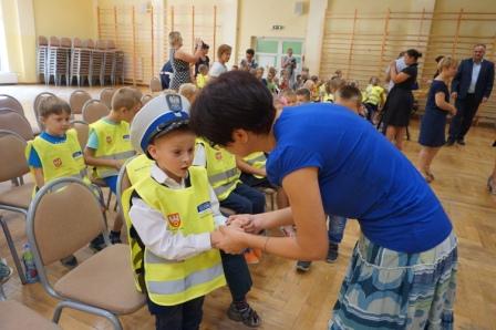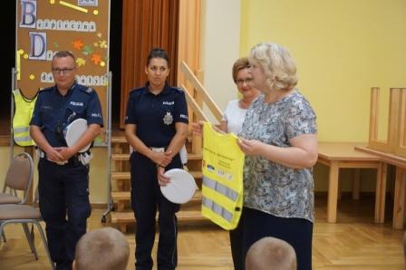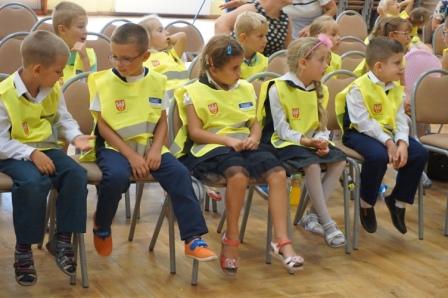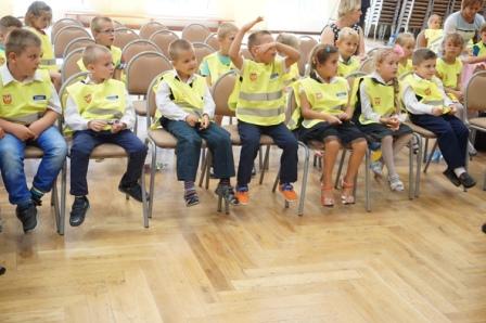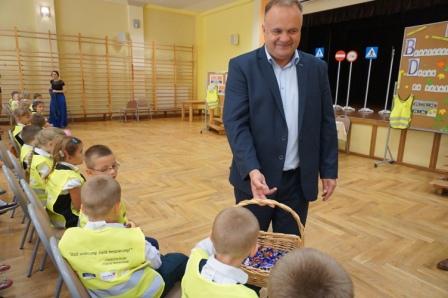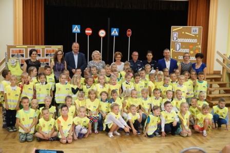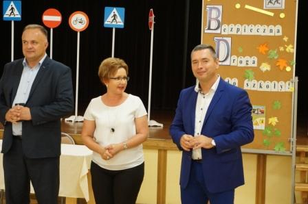 Dnia 13 września uczniowie klas pierwszych naszej gminy spotkali się ze starostą pilskim panem Eligiuszem Komarowskim oraz radnym Rady Miasta w Pile Jackiem Bogusławskim w ramach akcji „Bądź widoczny, bądź bezpieczny", której celem jest zwiększenie bezpieczeństwa dzieci na drogach. Gośćmi byli również funkcjonariusze z Komendy Powiatowej Policji w Pile, którzy wygłosili prelekcje na temat bezpiecznego poruszania się po drogach. Dzieci miały możliwość zadawania pytań, na które uzyskały profesjonalne odpowiedzi. Na zakończenie otrzymały kamizelki odblaskowe. W spotkaniu uczestniczyła również pani burmistrz Wyrzyska Bogusława Jagodzińska oraz radna Iwona Szulc. Spotkanie przebiegało w miłej atmosferze, a pierwszaki ze wszystkich szkół miały możliwość poznania się i wspólnej zabawy.