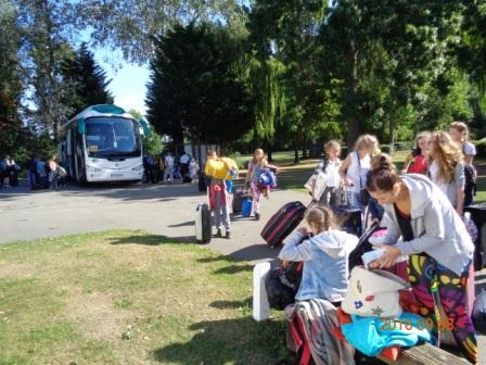 Wykończeni podróżą wszyscy wysiedliśmy z autobusu trzymając się swoich znajomych ze szkoły. Panie przydzieliły nas do pokoi. Trafiłam do dwunastoosobowego. Obawiałam się atmosfery, bo znałam tylko 2 osoby z całej dwunastki. Po chwili weszłam do pokoju i bardzo się zdziwiłam. Łóżka były trzypiętrowe i natychmiast zaczęła się walka o dogodne miejsce. Ja spałam najniżej obok drzwi, bo bałam się, że z wyższego piętra spadnę. W tak małej przestrzeni, jaką był ten pokój 12 osób próbowało się rozgościć. Najważniejsze rzeczy wypakowaliśmy, a pozostałe zostały w walizkach. Szybko zapoznałam się z innymi osobami w pokoju i byłam szczęśliwa, że to właśnie z nimi spędzę najbliższe 10 dni. Wszyscy byli bardzo pozytywnie nastawieni, bardzo radośni i pełni energii. Potem poszłam wraz z moją przyjaciółką zapoznać się z chłopakami, którzy mieszkali w pokoju obok. Chłopacy byli również radośni i pełni pozytywnej energii. Wraz z trzema dziewczynami poszliśmy zobaczyć podwórko. Było tam ogromne boisko, ławeczki a wokół las. Zobaczyliśmy, że chłopcy grają w piłkę nożną i dołączyliśmy do nich. Staraliśmy się, by doprowadzić drużynę do zwycięstwa. Grając w najlepsze, minęły nam 3 godziny! O godzinie 16 pojechaliśmy pociągiem do centrum. Byłam podekscytowana dosłownie wszystkim. Wysiedliśmy na Victoria Station. Londyn „na żywo” okazał się cudowny. Wszędzie mnóstwo różnych ludzi, białych, czarnych, z zasłoniętymi twarzami i tych, którzy nie przejmowali się swoim wyglądem. Spacer zapoznawczy był świetny, widzieliśmy tyle sławnych obiektów. Po powrocie zjedliśmy ciepły posiłek, który bardzo mi smakował. Potem, pomimo bólu nóg i zmęczenia, poszłam znów grać w piłkę. Chłopcy rozśmieszali mnie (to było bardzo miłe), więc szybko zapomniałam o zmęczeniu. Graliśmy do wieczora. Potem jeszcze długo rozmawialiśmy i wygłupialiśmy się do późnej nocy w naszym pokoju. Ja nie byłam aż tak wytrzymała i usnęłam, ale inni dalej się wygłupiali (podobno .) Wspominam najlepiej ten dzień, bo właśnie wtedy rozpoczęła się moja cudowna przygoda z Londynem i wspaniałymi koleżankami i kolegami. Nigdy tego dnia i tych osób nie zapomnę.