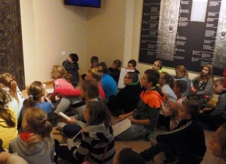 Kolejnym etapem wycieczki było zwiedzanie znajdującego się na Wzgórzu Lecha Muzeum Archidiecezji Gnieźnieńskiej. W muzeum zobaczyliśmy wiele eksponatów związanych z historią Gniezna. Poznaliśmy życiorys św. Wojciecha przedstawiony w niezwykle interesujący sposób na tzw.: „Drzwiach gnieźnieńskich”. Najbardziej atrakcyjna część zwiedzania polegała na wzięciu udziału w zabawie : „Poszukiwanie skarbów”. Zadaniem każdego dziecka było odszukanie danego obiektu na terenie muzeum, kierując się zaleceniami zawartymi w instrukcji, którą otrzymywał każdy uczestnik wycieczki.