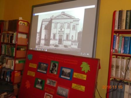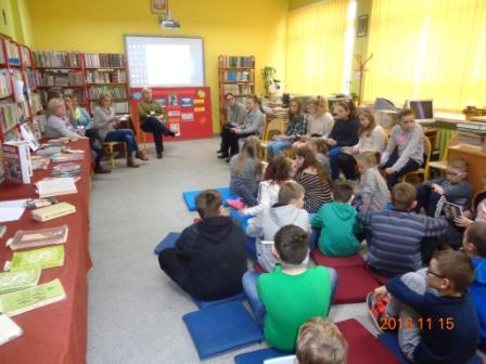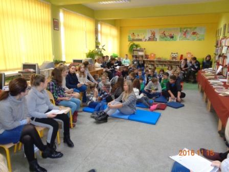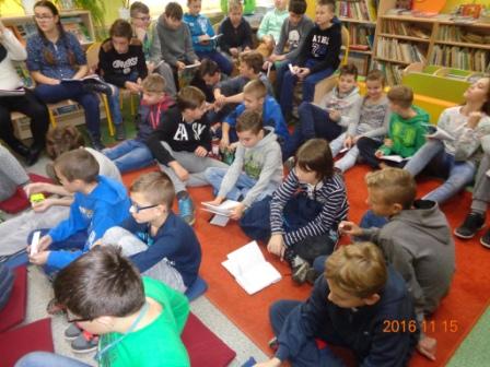 15 listopada 2016 roku minęła 100. rocznica śmierci literackiego noblisty Henryka Sienkiewicza. Bibliotekarki we współpracy z nauczycielem plastyki przygotowały wystawkę prac plastycznych. Przedstawiała ona ilustracje do lektury szkolnej autorstwa Sienkiewicza pt. ” W pustyni i w puszczy.” Panie z biblioteki przygotowały wystawkę książek autora oraz gazetkę okolicznościową poświęconą pisarzowi. Nauczycielka języka polskiego pani Małgorzata Stramel wybrała fragmenty lektury do wspólnego odczytania. Uczniowie otrzymali fragmenty z tygodniowym wyprzedzeniem, aby móc się dobrze przygotować do zbiorowego czytania. Właśnie we wtorek 15 listopada uczniowie klas szóstych przyszli do biblioteki, aby uczcić pamięć H. Sienkiewicza. Na początku wspólnie obejrzeliśmy prezentację multimedialną przedstawiającą życie i twórczość autora. Następnie przystąpiliśmy do czytania rozdziału o spotkaniu bohaterów książki ze słoniem. Kolejni uczniowie czytali wyznaczone fragmenty. Na koniec spotkania obejrzeliśmy 2 pokazy przedstawiające roślinność i zwierzęta uwiecznione w lekturze.