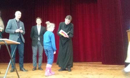 Amelia Cieśla zaprezentowała fragment bajki „Cinderella” – „Kopciuszek”, Kinga Głuszanowska „Snow White and the seven Dwarfs” – „Królewna Śnieżka i siedmiu krasoludków” natomiast Adrian Głuszanowski „Puss in boots” – „Kot w butach”.