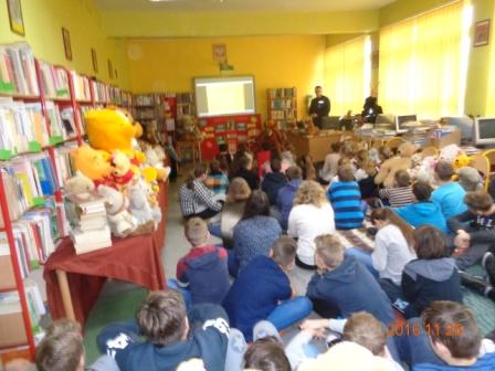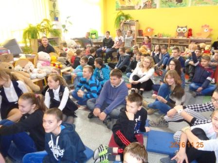 25 listopada z uczniami klas 6 spotkał się nasz dzielnicowy z Komisariatu Policji w Wyrzysku st. sierż. Mateusz Tomczyński. Tematem głównym spotkania była odpowiedzialność karna nieletnich. Policjant omówił najważniejsze przepisy zawarte w ustawie o postępowaniu w sprawach nieletnich. Podczas spotkania uczniowie dowiedzieli się jaką odpowiedzialność karna ponoszą nieletni. Szczególna uwagę poświęcił bezpieczeństwu dzieci w drodze do szkoły. Omówił przepisy ruch drogowego dotyczące tego zagadnienia.