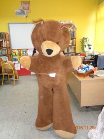 Wybrano również najmniejszego misia – zwyciężyła maskotka Franka Kamińskiego z klasy II a. Największego pluszaka dostarczył nam Antek Krzoska, z klasy IVb.