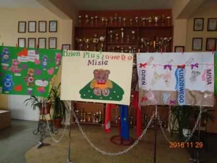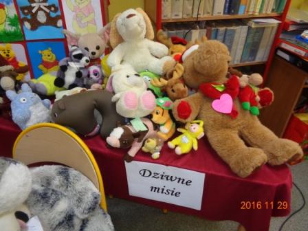 Dzień Pluszowego Misia w naszej szkole był obchodzony 29 listopada, ale już od czwartku zaczęły się przygotowania do tego niezwykłego święta. Wszyscy uczniowie mogli przynieść do biblioteki szkolnej swoje pluszowe misiaki. Oczywiście najwięcej maskotek przyniosły dzieci z klas I-III. Rekordzistką , bo aż 82 misie, okazała się klasa II c. Maluchy miały też za zadanie wykonać prace plastyczne, które były bardzo piękne i ciekawe.