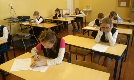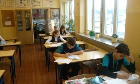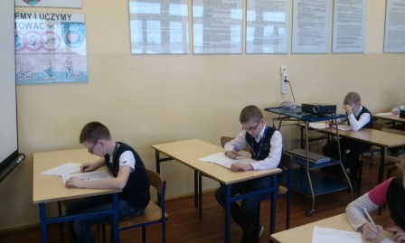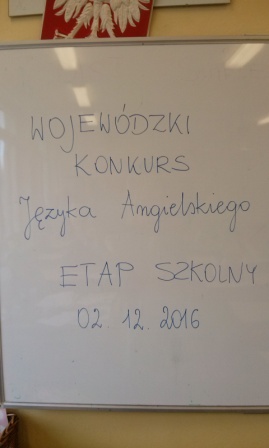 Dnia 2 grudnia 2016 w naszej szkole odbył się etap szkolny Wojewódzkiego Konkursu Języka Angielskiego dla szkól podstawowych. Eliminacje zaczęły się o godzinie 13.00 w sali nr 17 i trwały 45 minut. W konkursie udział wzięło 14 uczniów: Milena Cieśla kl. 4 b, Eryk Anuszkiewicz, Julia Bugaj, Nadia Głuszanowska, Fabian Wolski – wszyscy z kl. 5 a, Marcel Betański kl. 5 b, Bartłomiej Zbieralski i Michał Zieliński z kl. 5 c oraz uczniowie klas szóstych: Aleksandra Regulska, Wiktoria Tworek kl. 6 a, Wiktoria Rózga kl. 6 b Maximilian Rojewski, Mateusz Zamiatała i Maurycy Zięba kl. 6 c. Wszyscy pracowali nad rozwiązaniem testu z ogromnym zaangażowaniem i skupieniem. W ostatecznym podsumowaniu wyników do dalszego etapu, czyli rejonowego zakwalifikowała się Nadia Głuszanowska z klasy 5 a. Gratulujemy serdecznie!