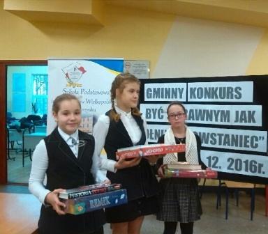 Dnia 8 grudnia uczniowie Aleksandra Regulska, Wiktoria Tworek, Martyna Jagodzińska, Mateusz Zamiatała i Maksymilian Rojewski reprezentowali naszą szkołę w Gminnym Konkursie Historycznym – „Być sprawnym jak żołnierz-powstaniec ”.