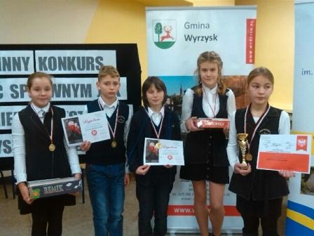 Po zakończeniu konkurencji nastąpiło podliczenie punktów z części teoretycznej i sprawnościowej. Okazało się , że zdobyliśmy 4 miejsce. Jednak indywidualnie z testów na 32 pkt., Wiktoria Tworek zdobyła 31,5 pkt. i zdobyła I miejsce, a Aleksandra Regulska z pkt.29,5 zdobyła II miejsce ex aequo z koleżanką z Falmierowa. Dziewczynki otrzymały nagrody rzeczowe ufundowane przez Urząd Miejski w Wyrzysku. Gratulujemy .