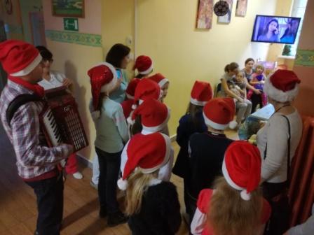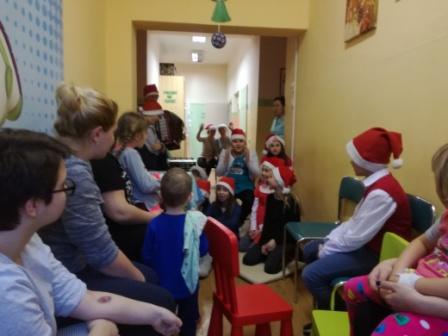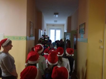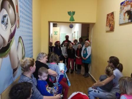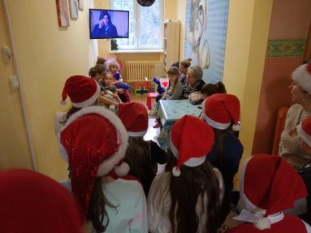 Przebywało tam 7 dzieci z rodzicami. Przywitaliśmy ich kolędą Przybieżeli do Betlejem. Rozdaliśmy paczki. Wspólnie zaśpiewaliśmy kilka kolęd i pastorałek. Uczniowie mieli okazję porozmawiać z małymi pacjentami . Myślę, że zrobiliśmy im bardzo miłą niespodziankę. Szczególnie na twarzach personelu widać było wzruszenia i radość. Również my i nasi uczniowie wychodziliśmy ze szpitale z radością i szczęściem w sercu. Okazuje się, że potrzeba tak niewiele aby być szczęśliwym wystarczy otworzyć się na drugiego człowieka.