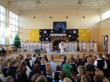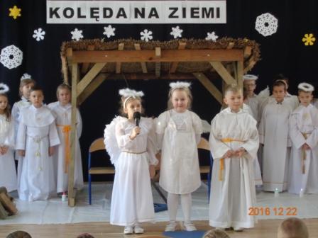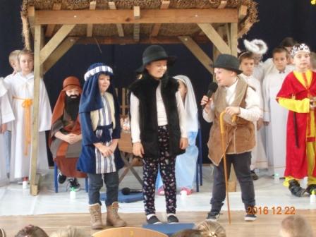 Święta Bożego Narodzenia to wyjątkowy okres w roku, na który długo czekają nie tylko dorośli, ale również dzieci. Jasełka w wykonaniu uczniów klas II wprowadziły nas w świąteczny nastrój. Dzieci w przepięknych strojach występowały przed swoimi nauczycielami, kolegami i rodzicami. Salę zdobiła piękna dekoracja. Publiczność po raz kolejny mogła przeżyć historię Marii i Józefa. Scenki z życia nowonarodzonego dzieciątka, pasterzy, mędrców, dzieci oraz aniołów przeplatane były kolędami i pastorałkami. Gra małych aktorów była pełna otwartości, szczerości, prostoty i ciepła.
