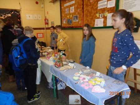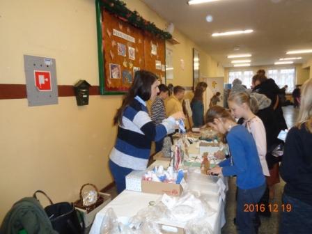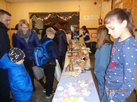 Corocznym zwyczajem, stał się organizowany w naszej szkole w czasie przedświątecznym kiermasz ozdób bożonarodzeniowych. Własnoręczne wykonanie zwiększa ich wartość - szczególnie tę sentymentalną - jak i unikalność. Wiele też pracy trzeba, aby takie cacka powstały. W tym roku znaczna większość ozdób była autorstwa pani Izoldy Perlińskiej, ale wiele z nich wykonali także uczniowie i ich rodzice. Bardzo im dziękujemy! Podobnie, dziękujemy uczniom i rodzicom, którzy upiekli pierniczki, babeczki i ciasta, które na równi z dekoracjami cieszyły się ogromnym powodzeniem.