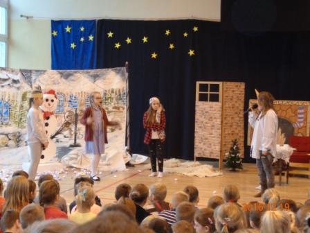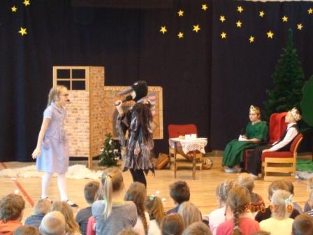 W czasie kiermaszu, swoje debiutanckie przedstawienie oparte na motywach baśni H. CH. Andersena pt. "Królowa Śniegu", wystawiło kółko teatralne ,,Kratka''. Uczniowie - aktorzy z wielką tremą oczekiwali na swój występ. Przygotowania do niego trwały zresztą od dwóch miesięcy. Nie tylko trzeba było opanować teksty swoich ról na pamięć, ale uczniowie wymyślali także stroje, scenografię, której elementy wykonywali własnoręcznie na zajęciach; dzielili się również pomysłami dotyczącymi ruchu scenicznego i muzyki, jaka ma być wykorzystana podczas przedstawienia. Włożyli bardzo dużo wysiłku, by spektakl się spodobał.