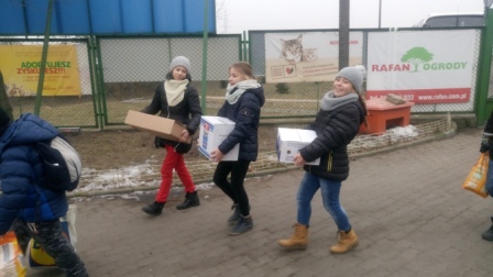 Zbiórka karmy dla zwierząt z bydgoskiego schroniska, to już tradycja naszej szkoły. Jak co roku, tak i w tym, przez dwa ostatnie tygodnie przed feriami, chętni uczniowie pełnili dyżury, by zebrać jak najwięcej przysmaków dla potrzebujących zwierzaków.