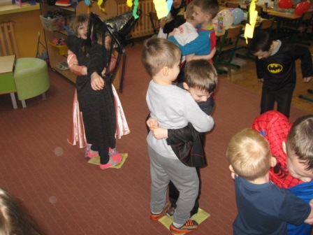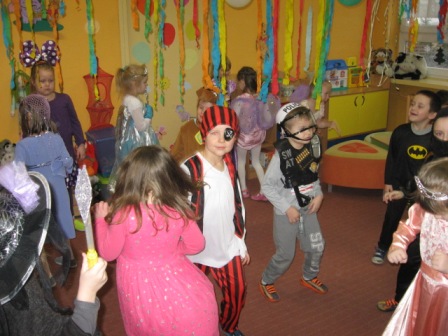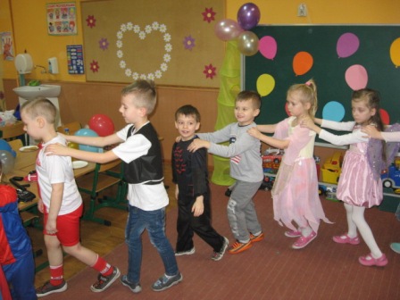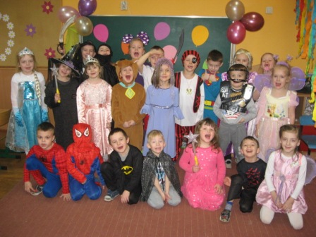 Jak co roku w karnawale w naszym przedszkolu odbył się oczekiwany przez dzieci „Bal Przebierańców”. Tego dnia już od rana w naszej sali pojawiały się kolorowe postacie. Dzieci przebrane były za bohaterów znanych bajek. W sali przedszkolnej można było spotkać: wróżki, królewny, czarownice, piratów, Batmana i wiele innych. Rozpoznać dzieci było bardzo trudno.