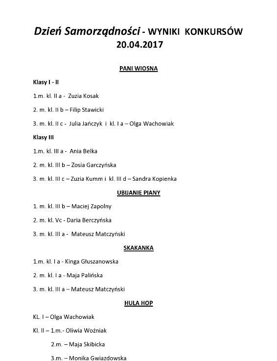 Dzień Samorządności - WYNIKI KONKURSÓW 20.04.2017