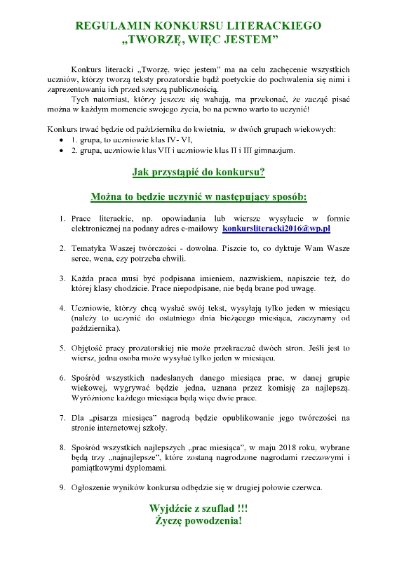 Poniżej zamieszczam regulamin konkursu i serdecznie zapraszam do przygody z pisaniem!