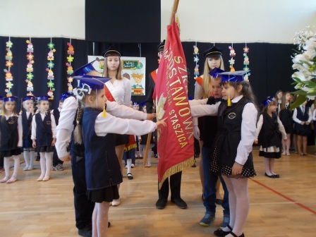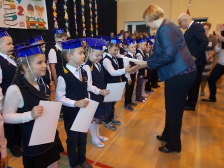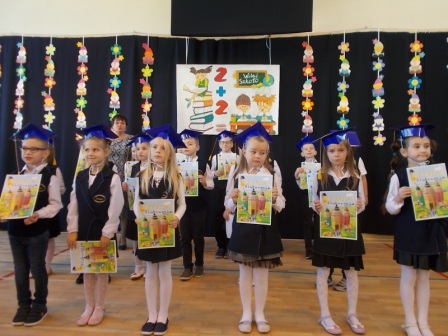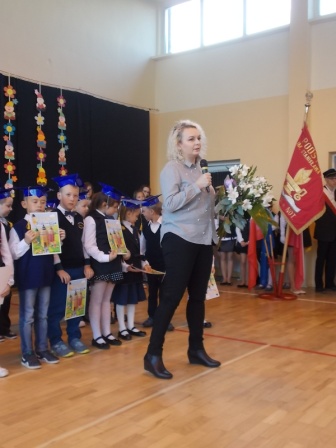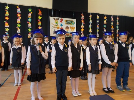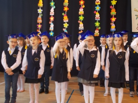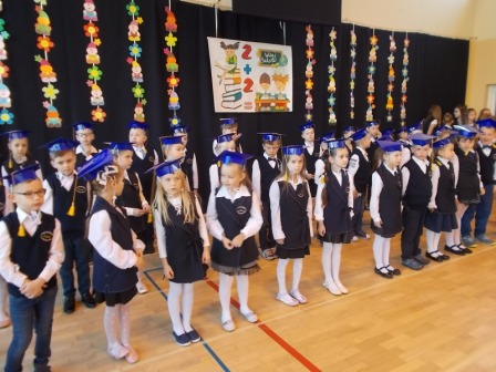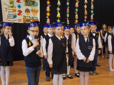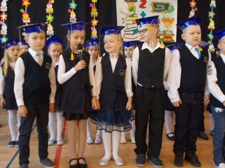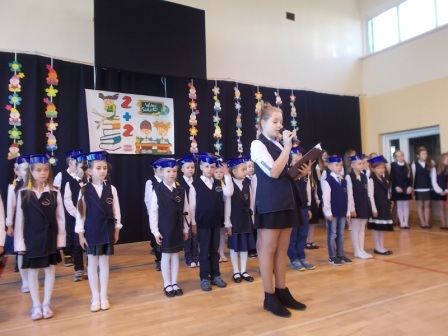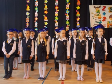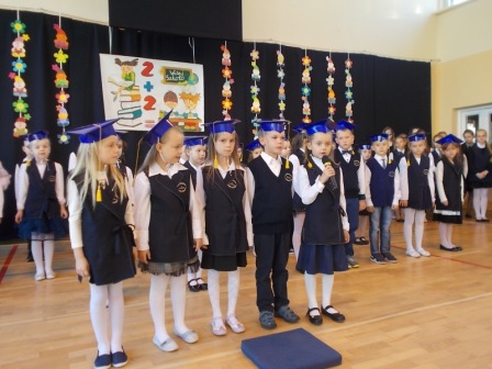 Wszystkich zebranych gości przywitał dyrektor szkoły Jacek Wiśniewski. Zanim pierwszaki złożyli uroczyste ślubowanie, zaprezentowali to, czego zdążyli nauczyć się przez ten krótki czas pobytu w szkole. Dobrze przygotowaną i zaprezentowaną częścią artystyczną udowodnili, że są gotowi na oficjalne przyjęcie do grona społeczności uczniowskiej. Punktem kulminacyjnym uroczystości było ślubowanie dzieci oraz rodziców. Aktu pasowania na ucznia dokonał dyrektor szkoły Jacek Wiśniewski, a piękne, kolorowe dyplomy i życzenia przekazała dyrektor Henryka Trojanowska- Białczak.