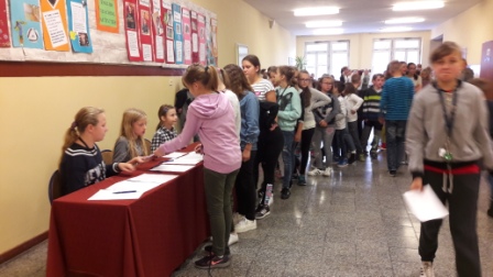 Po raz pierwszy w historii szkoły, wybory odbywały się w dwóch budynkach. Dokonano wyboru Zarządu z uwzględnieniem podziału na klasy IV-VI i VII oraz klas gimnazjalnych. W dniu wyborów w komisji wyborczej w budynku przy ulicy Głównej pracowali: Paulina Lewandowska, Klaudia Kosak, Zuzanna Rojewska i Weronika Magierska. Komisję pracującą przy ulicy Szkolnej tworzyli: Maja Kaczmarek, Marcelina Czechowicz i Edyta Kowalska. Frekwencja wyborcza wyniosła 82%. O wejście do Zarządu SU rywalizowało aż 23 kandydatów.